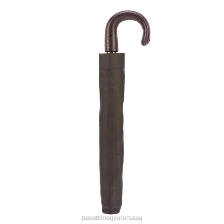 barna kockás esernyő, bőr fogantyú